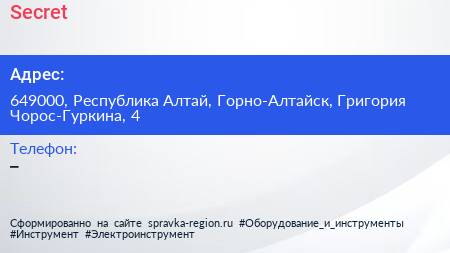 Secret по адресу 649000, Республика Алтай, Горно-Алтайск, Григория Чорос-Гуркина, 4 в дальнейшем Организация, размещена в следующих категориях: