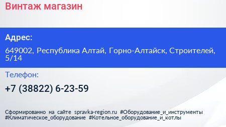 Винтаж, магазин по адресу 649002, Республика Алтай, Горно-Алтайск, Строителей, 5/14 в дальнейшем Организация, размещена в следующих категориях: