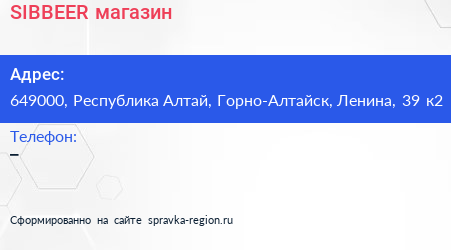 SIBBEER, магазин по адресу 649000, Республика Алтай, Горно-Алтайск, Ленина, 39 к2 в дальнейшем Организация, размещена в следующих категориях: