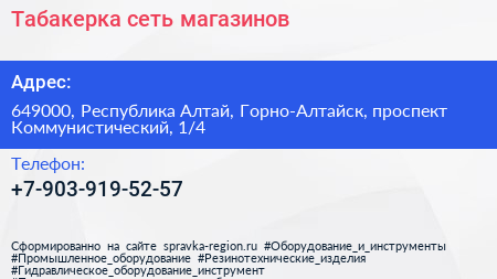 Табакерка, сеть магазинов по адресу 649000, Республика Алтай, Горно-Алтайск, проспект Коммунистический, 1/4 в дальнейшем Организация, размещена в следующих категориях: