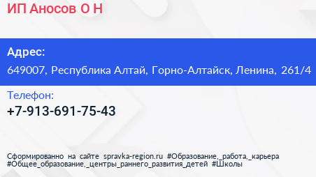 ИП Аносов О.Н. по адресу 649007, Республика Алтай, Горно-Алтайск, Ленина, 261/4 в дальнейшем Организация, размещена в следующих категориях: