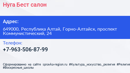Нуга Бест, салон по адресу 649000, Республика Алтай, Горно-Алтайск, проспект Коммунистический, 24 в дальнейшем Организация, размещена в следующих категориях: