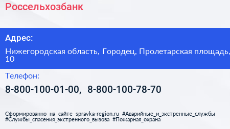 Россельхозбанк по адресу Нижегородская область, Городец, Пролетарская площадь, 10 в дальнейшем Организация, размещена в следующих категориях: