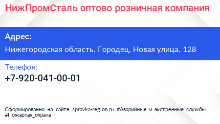 НижПромСталь, оптово-розничная компания по адресу Нижегородская область, Городец, Новая улица, 128 в дальнейшем Организация, размещена в следующих категориях: