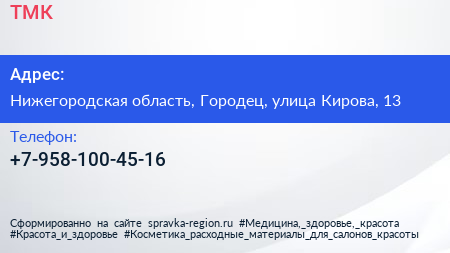 ТМК по адресу Нижегородская область, Городец, улица Кирова, 13 в дальнейшем Организация, размещена в следующих категориях: