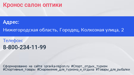Кронос, салон оптики по адресу Нижегородская область, Городец, Колхозная улица, 2 в дальнейшем Организация, размещена в следующих категориях: