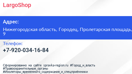 LargoShop по адресу Нижегородская область, Городец, Пролетарская площадь, 9 в дальнейшем Организация, размещена в следующих категориях: