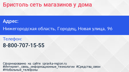 Бристоль, сеть магазинов у дома по адресу Нижегородская область, Городец, Новая улица, 96 в дальнейшем Организация, размещена в следующих категориях: