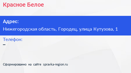Красное & Белое по адресу Нижегородская область, Городец, улица Кутузова, 1 в дальнейшем Организация, размещена в следующих категориях: