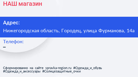 НАШ, магазин по адресу Нижегородская область, Городец, улица Фурманова, 14а в дальнейшем Организация, размещена в следующих категориях: