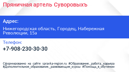 Пряничная артель Суворовыхъ по адресу Нижегородская область, Городец, Набережная Революции, 15а в дальнейшем Организация, размещена в следующих категориях: