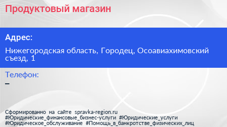 Продуктовый магазин по адресу Нижегородская область, Городец, Осоавиахимовский съезд, 1 в дальнейшем Организация, размещена в следующих категориях: