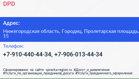DPD по адресу Нижегородская область, Городец, Пролетарская площадь, 15 в дальнейшем Организация, размещена в следующих категориях: