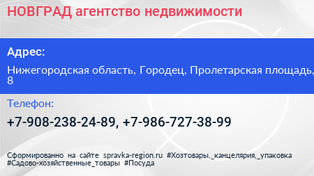НОВГРАД, агентство недвижимости по адресу Нижегородская область, Городец, Пролетарская площадь, 8 в дальнейшем Организация, размещена в следующих категориях: