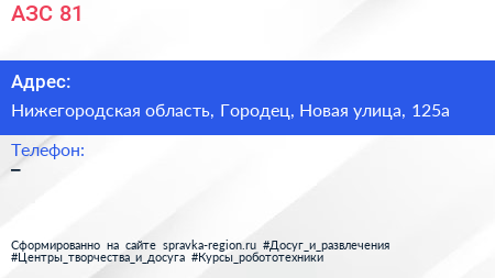 АЗС №81 по адресу Нижегородская область, Городец, Новая улица, 125а в дальнейшем Организация, размещена в следующих категориях: