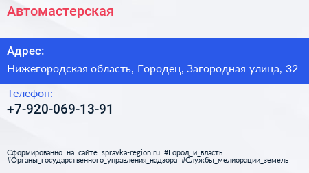 Автомастерская по адресу Нижегородская область, Городец, Загородная улица, 32 в дальнейшем Организация, размещена в следующих категориях: