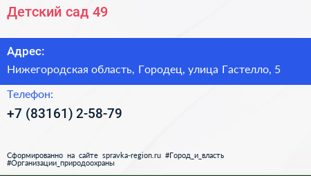 Детский сад №49 по адресу Нижегородская область, Городец, улица Гастелло, 5 в дальнейшем Организация, размещена в следующих категориях:
