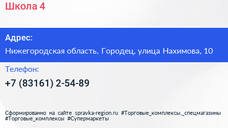 Школа №4 по адресу Нижегородская область, Городец, улица Нахимова, 10 в дальнейшем Организация, размещена в следующих категориях: