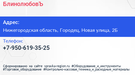 БлинолюбовЪ по адресу Нижегородская область, Городец, Новая улица, 2Б в дальнейшем Организация, размещена в следующих категориях: