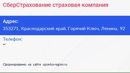 СберСтрахование, страховая компания по адресу 353271, Краснодарский край, Горячий Ключ, Ленина, 92 в дальнейшем Организация, размещена в следующих категориях: