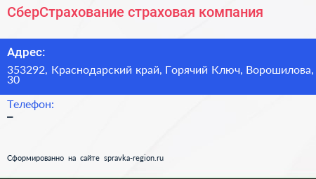 СберСтрахование, страховая компания по адресу 353292, Краснодарский край, Горячий Ключ, Ворошилова, 30 в дальнейшем Организация, размещена в следующих категориях: