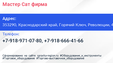 Мастер Сат, фирма по адресу 353290, Краснодарский край, Горячий Ключ, Революции, 4 в дальнейшем Организация, размещена в следующих категориях: