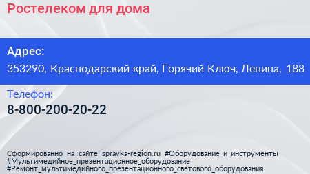 Ростелеком для дома по адресу 353290, Краснодарский край, Горячий Ключ, Ленина, 188 в дальнейшем Организация, размещена в следующих категориях: