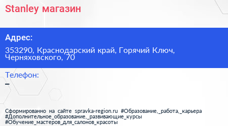 Stanley, магазин по адресу 353290, Краснодарский край, Горячий Ключ, Черняховского, 70 в дальнейшем Организация, размещена в следующих категориях:
