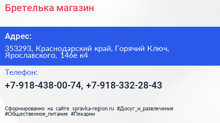 Бретелька, магазин по адресу 353293, Краснодарский край, Горячий Ключ, Ярославского, 146е к4 в дальнейшем Организация, размещена в следующих категориях: