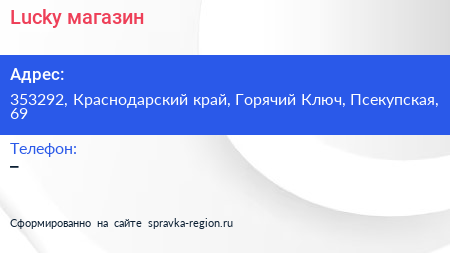 Lucky, магазин по адресу 353292, Краснодарский край, Горячий Ключ, Псекупская, 69 в дальнейшем Организация, размещена в следующих категориях: