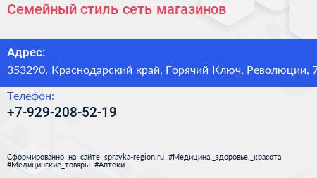 Семейный стиль, сеть магазинов по адресу 353290, Краснодарский край, Горячий Ключ, Революции, 7 в дальнейшем Организация, размещена в следующих категориях: