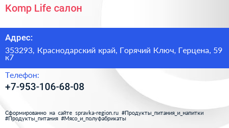 Komp-Life, салон по адресу 353293, Краснодарский край, Горячий Ключ, Герцена, 59 к7 в дальнейшем Организация, размещена в следующих категориях: