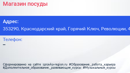 Магазин посуды по адресу 353290, Краснодарский край, Горячий Ключ, Революции, 4 в дальнейшем Организация, размещена в следующих категориях: