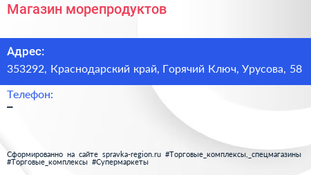 Магазин морепродуктов по адресу 353292, Краснодарский край, Горячий Ключ, Урусова, 58 в дальнейшем Организация, размещена в следующих категориях: