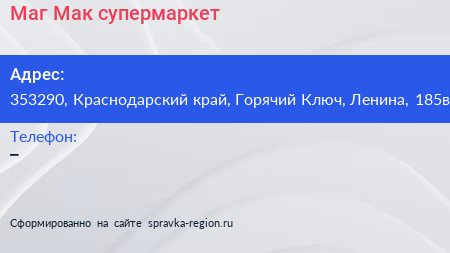 Маг Мак, супермаркет по адресу 353290, Краснодарский край, Горячий Ключ, Ленина, 185в в дальнейшем Организация, размещена в следующих категориях: