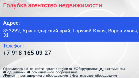 Голубка, агентство недвижимости по адресу 353292, Краснодарский край, Горячий Ключ, Ворошилова, 31 в дальнейшем Организация, размещена в следующих категориях:
