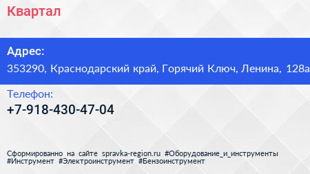 Квартал по адресу 353290, Краснодарский край, Горячий Ключ, Ленина, 128а в дальнейшем Организация, размещена в следующих категориях: