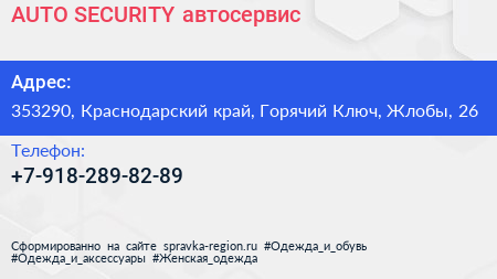 AUTO SECURITY, автосервис по адресу 353290, Краснодарский край, Горячий Ключ, Жлобы, 26 в дальнейшем Организация, размещена в следующих категориях: