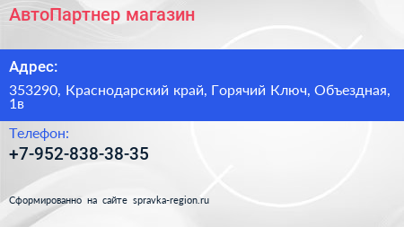АвтоПартнер, магазин по адресу 353290, Краснодарский край, Горячий Ключ, Объездная, 1в в дальнейшем Организация, размещена в следующих категориях: