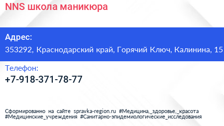 NNS, школа маникюра по адресу 353292, Краснодарский край, Горячий Ключ, Калинина, 15 в дальнейшем Организация, размещена в следующих категориях: