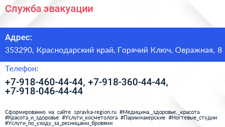 Служба эвакуации по адресу 353290, Краснодарский край, Горячий Ключ, Овражная, 8 в дальнейшем Организация, размещена в следующих категориях: