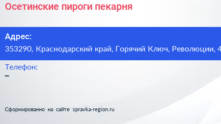 Осетинские пироги, пекарня по адресу 353290, Краснодарский край, Горячий Ключ, Революции, 4 в дальнейшем Организация, размещена в следующих категориях: