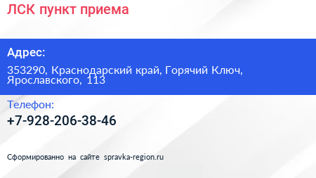 ЛСК, пункт приема по адресу 353290, Краснодарский край, Горячий Ключ, Ярославского, 113 в дальнейшем Организация, размещена в следующих категориях: