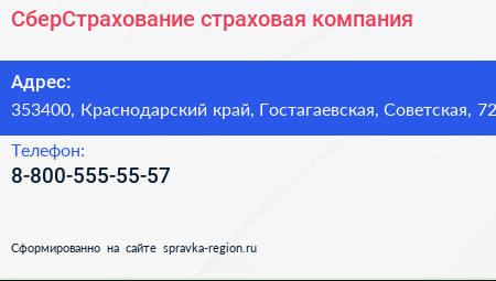 СберСтрахование, страховая компания по адресу 353400, Краснодарский край, Гостагаевская, Советская, 72 в дальнейшем Организация, размещена в следующих категориях: