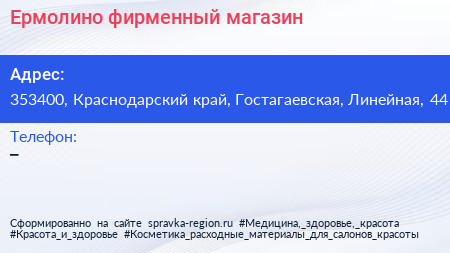Ермолино, фирменный магазин по адресу 353400, Краснодарский край, Гостагаевская, Линейная, 44 в дальнейшем Организация, размещена в следующих категориях: