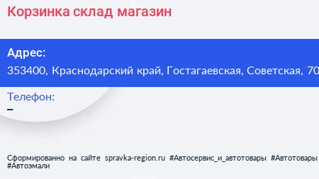 Корзинка, склад-магазин по адресу 353400, Краснодарский край, Гостагаевская, Советская, 70 в дальнейшем Организация, размещена в следующих категориях: