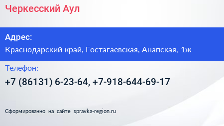 Черкесский Аул по адресу Краснодарский край, Гостагаевская, Анапская, 1ж в дальнейшем Организация, размещена в следующих категориях: