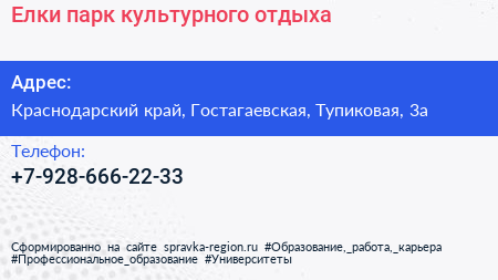 Елки, парк культурного отдыха по адресу Краснодарский край, Гостагаевская, Тупиковая, 3а в дальнейшем Организация, размещена в следующих категориях:
