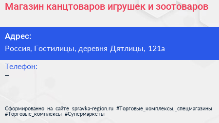Магазин канцтоваров, игрушек и зоотоваров по адресу 1, Покровская улица, КП "Балтийская Слобода 2", Гостилицкое сельское поселение, Ломоносовский район, Ленинградская область, Северо-Западный федеральный округ, 188514, Россия в дальнейшем Организация, размещена в следующих категориях: