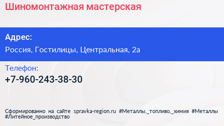 Шиномонтажная мастерская по адресу 40, Центральная улица, Петровское, Оржицкое сельское поселение, Ломоносовский район, Ленинградская область, Северо-Западный федеральный округ, 188527, Россия в дальнейшем Организация, размещена в следующих категориях: